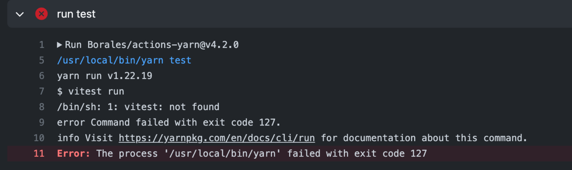 CI/CD 배포 시에 .yml에서 React 테스트를 진행할 수 있도록 yarn test(= vitest run)을 입력했는데, vitest not found라는 에러가 계속 떴었다.