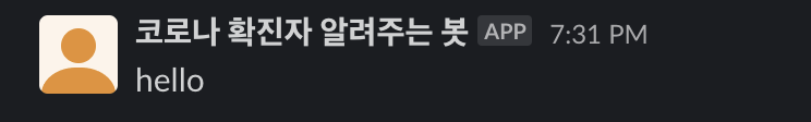 토큰을 통해, 어느 채널의 어떤 앱인지 확인할 수 있고, 이를 기반으로 #bots-playground에 'hello' 라는 메시지를 보낼 수 있었다.