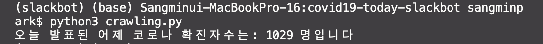 send_slack_message(f"오늘 발표된 어제 코로나 확진자수는: {sum(nums)}명입니다.")