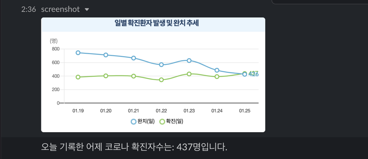 오늘의 코로나 Slackbot에 이미지도 함께 추가하도록 개선했다.
