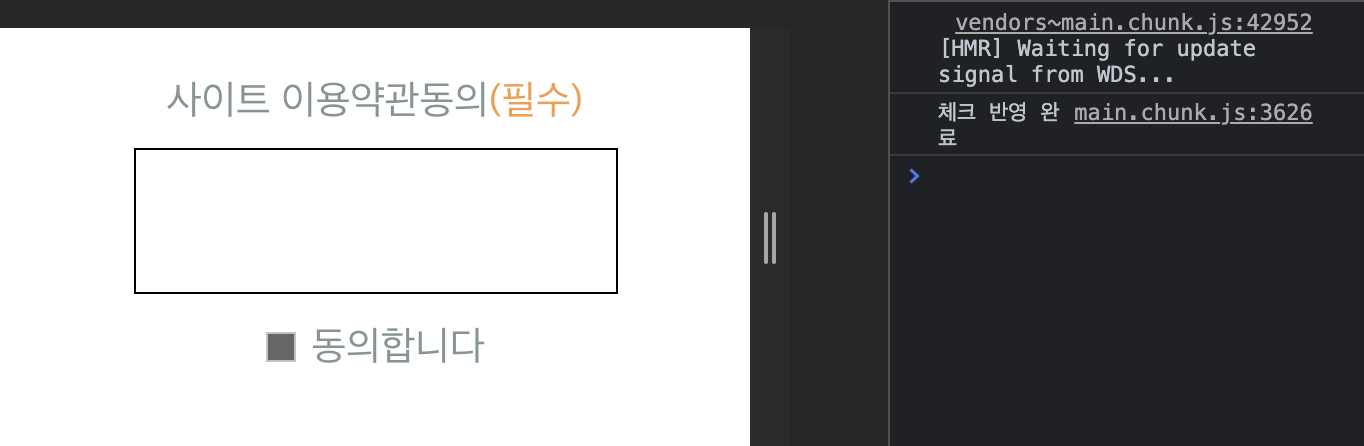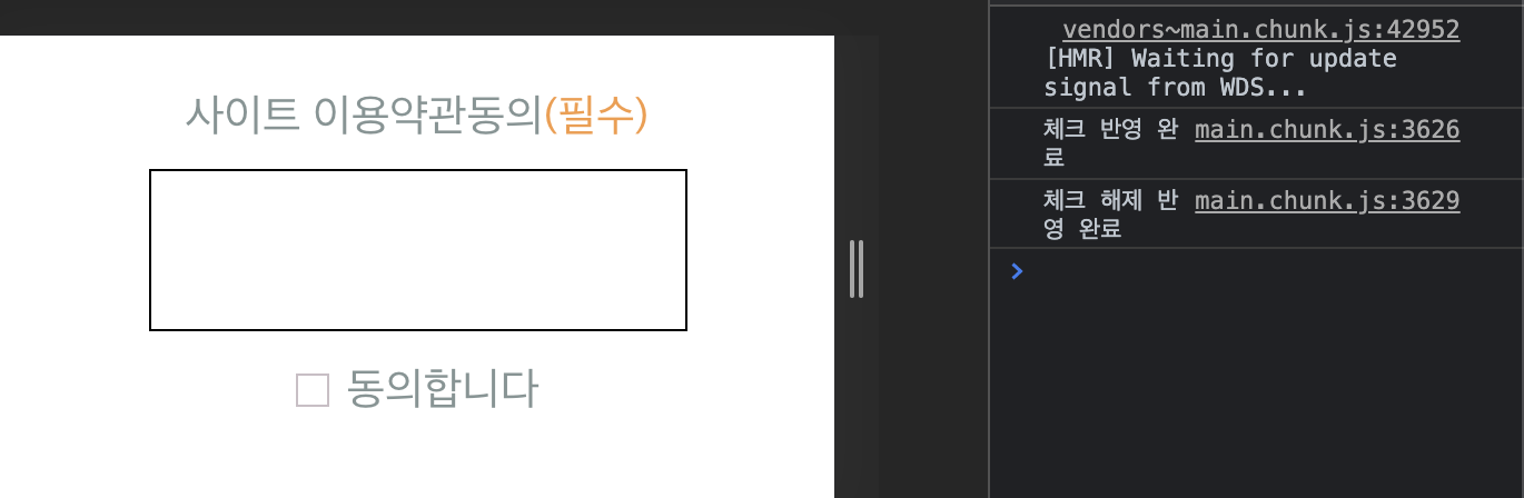 이제 전부 체크되었을 때 버튼을 활성화하고 안내문구가 사라지게 하는 방법을 알아보자. 이 쪽은 사실 앞에서 제대로 했다면 어려울 게 없는 부분이다.