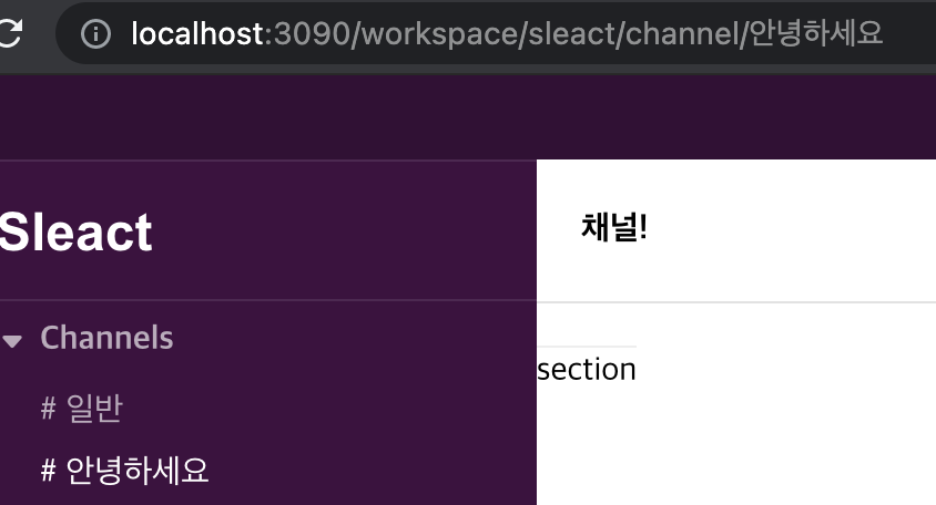 그래서 이렇게 누르면, workspace/워크스페이스이름/channel/채널이름 으로 URL이 바뀌게 된다! 채널마다 따로 URL을 갖게 되는 것이다.